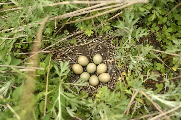 寧夏固原市涇源縣大灣鄉(xiāng)移民曾經(jīng)生活的遺跡下,一窩鳥(niǎo)蛋在草叢中(6月4日攝)。