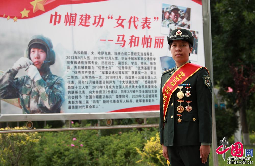 2020年,在中國(guó)人民解放軍建軍93周年之際,中央宣傳部、中央軍委政治工作部聯(lián)合發(fā)布13位“最美新時(shí)代革命軍人”。來(lái)自新疆軍區(qū)某合成團(tuán)坦克二連政治指導(dǎo)員馬和帕麗獲此稱號(hào)。