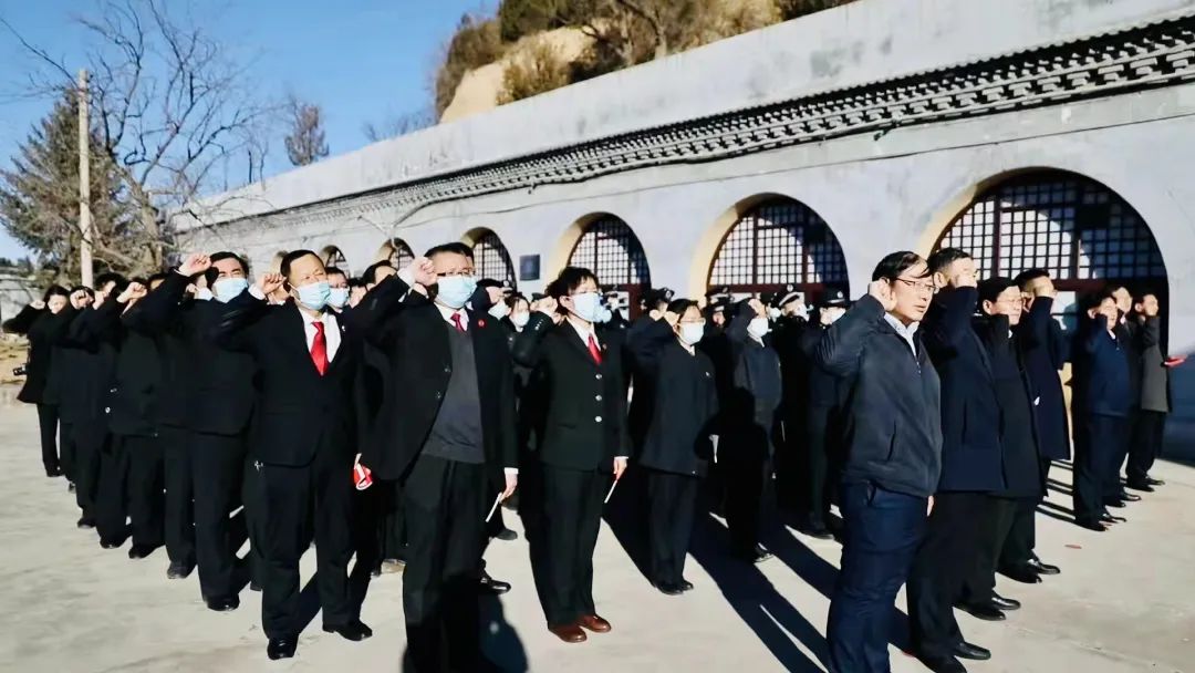 活動現(xiàn)場,延安市中級人民法院黨組書記、院長康天軍帶領(lǐng)全市法院、檢察院、公安、司法行政戒毒系統(tǒng)80余名政法干警進行了憲法宣誓?;顒友堦兾魇£兏蕦幐锩鶕?jù)地史研究會副會長郝鳳年進行“向歷史學習,為未來奮斗”專題現(xiàn)場授課。全體人員參觀了陜甘寧邊區(qū)高等法院舊址、陜甘寧邊區(qū)審判史陳列館。