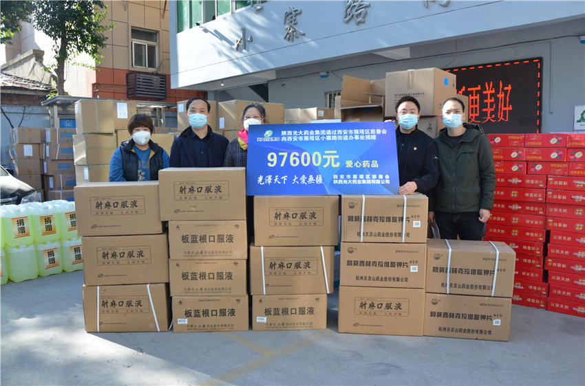 12月15日、20日,陜西光大藥業(yè)集團(tuán)股份有限公司向陜西省商貿(mào)學(xué)校、西安市雁塔區(qū)小寨路街道辦事處捐贈(zèng)價(jià)值10余萬元的防護(hù)口罩、消毒液等防疫物資。