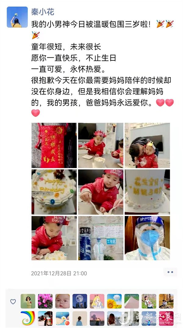 12月28日,是她兒子三歲生日,兒子生病時(shí),她在西安支援。如今,兒子生日,她又在隔離點(diǎn),她把對(duì)兒子的愧疚之心轉(zhuǎn)化為對(duì)隔離群眾的關(guān)愛之心。