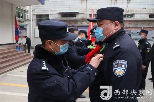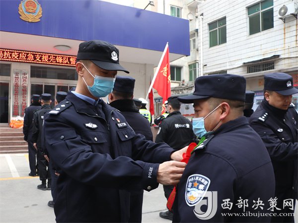 活動中,局黨委委員、政工室主任李建軍宣讀《勉縣公安局關(guān)于成立疫情防控應(yīng)急支援隊臨時黨支部的決定》,局領(lǐng)導(dǎo)為30名應(yīng)急先鋒隊隊員佩戴胸花,充分肯定他們不畏艱險、沖鋒在前的大局意識和忠誠履職、奮勇?lián)?dāng)?shù)姆瞰I(xiàn)精神。
