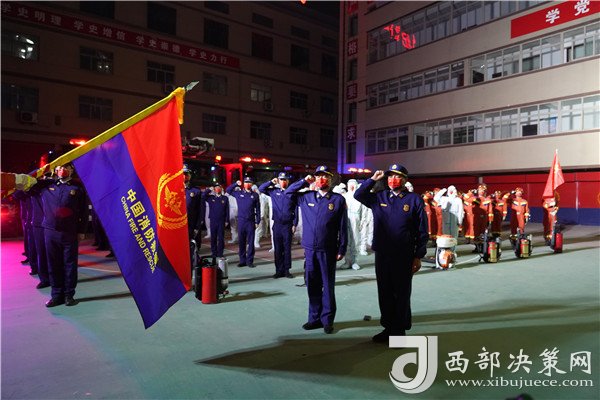 大家宣誓:“堅決履行國家綜合性消防救援隊伍的神圣使命,英勇頑強,不怕犧牲……為維護人民生命財產(chǎn)安全和社會穩(wěn)定,貢獻自己的力量!”支隊舉行疫情防控專業(yè)處置隊出征儀式后,兩支隊伍深夜奔赴疫情防控一線戰(zhàn)場,守護延安城。