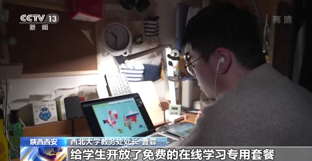 西北大學(xué)教務(wù)處處長 曹蓉:我們擔(dān)心網(wǎng)絡(luò)卡頓,西北大學(xué)的信息化處充分挖掘網(wǎng)絡(luò)資源,擴(kuò)容了帶寬,給學(xué)生開放了免費的在線學(xué)習(xí)專用套餐。