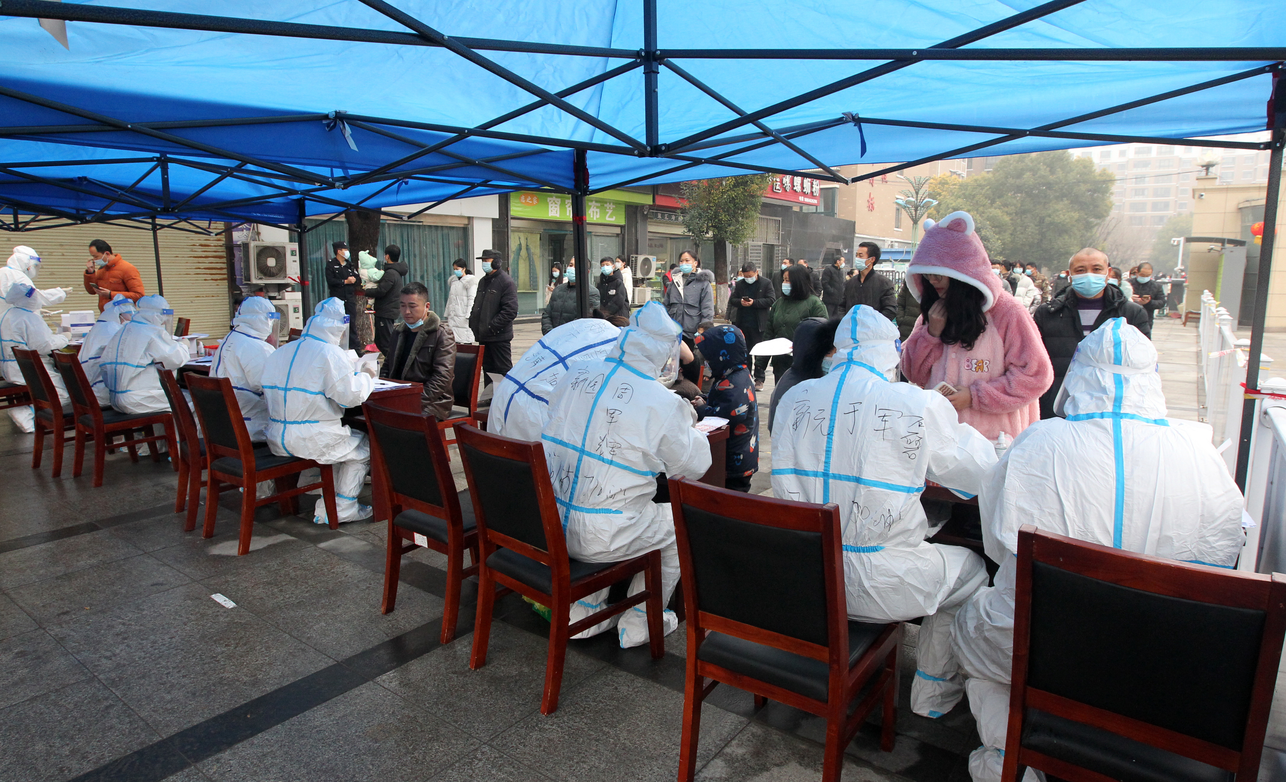 1月6日,河南省許昌市建安區(qū)鏡湖社區(qū)居民在接受核酸檢測。新華社發(fā)(牛書培 攝)