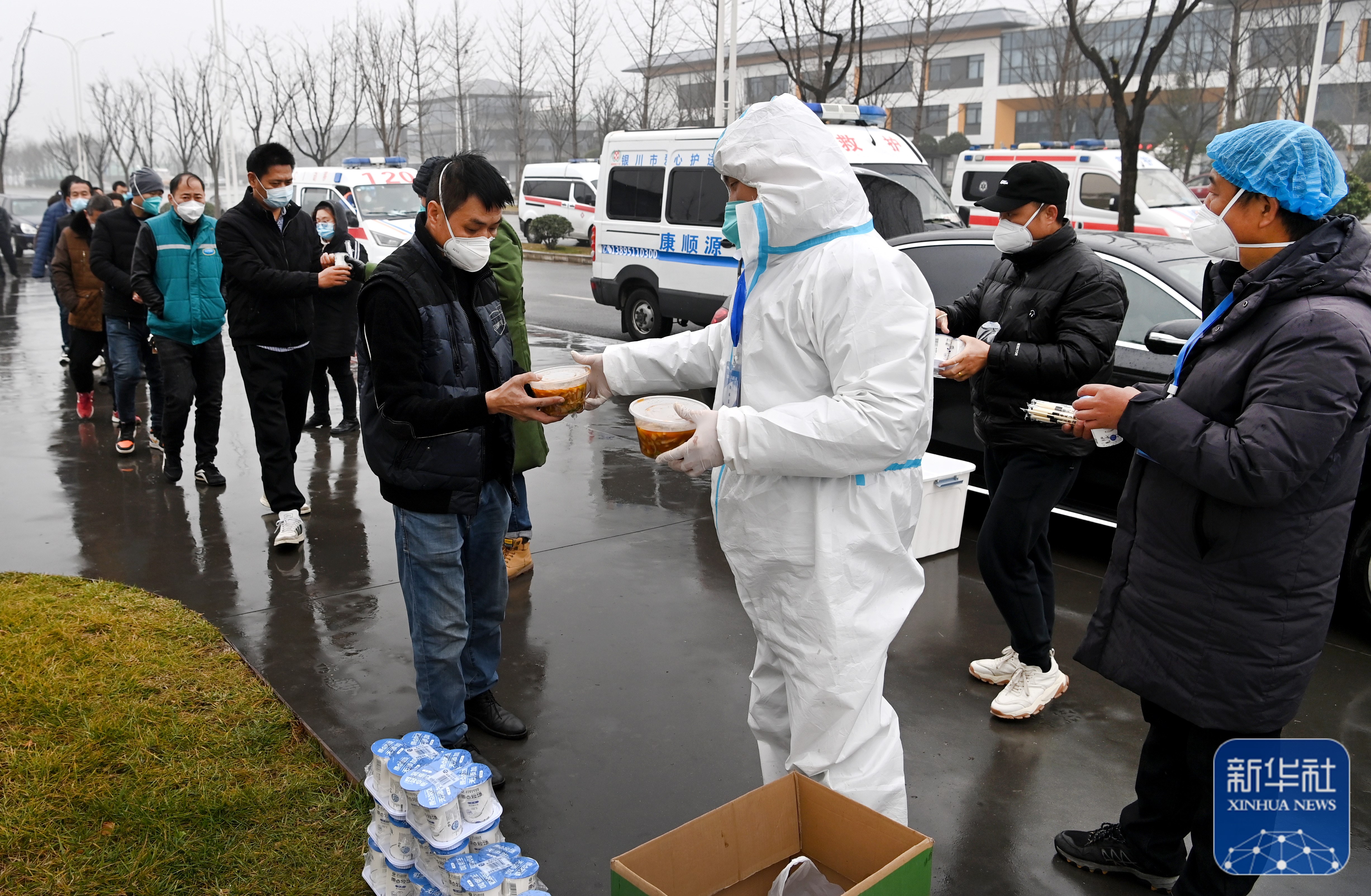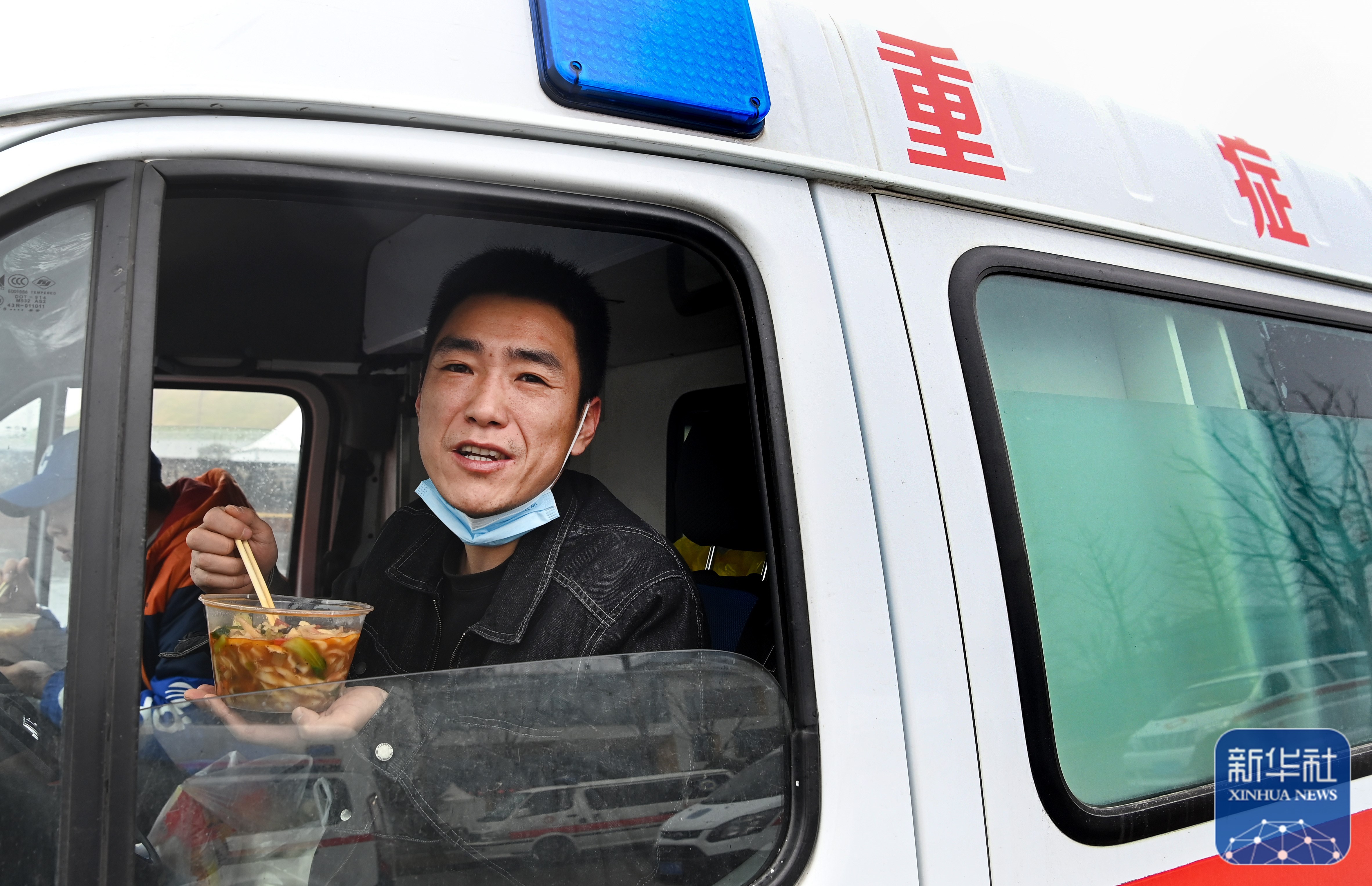 1月8日,來自河南的救護(hù)車司機吃上“愛心餐”。