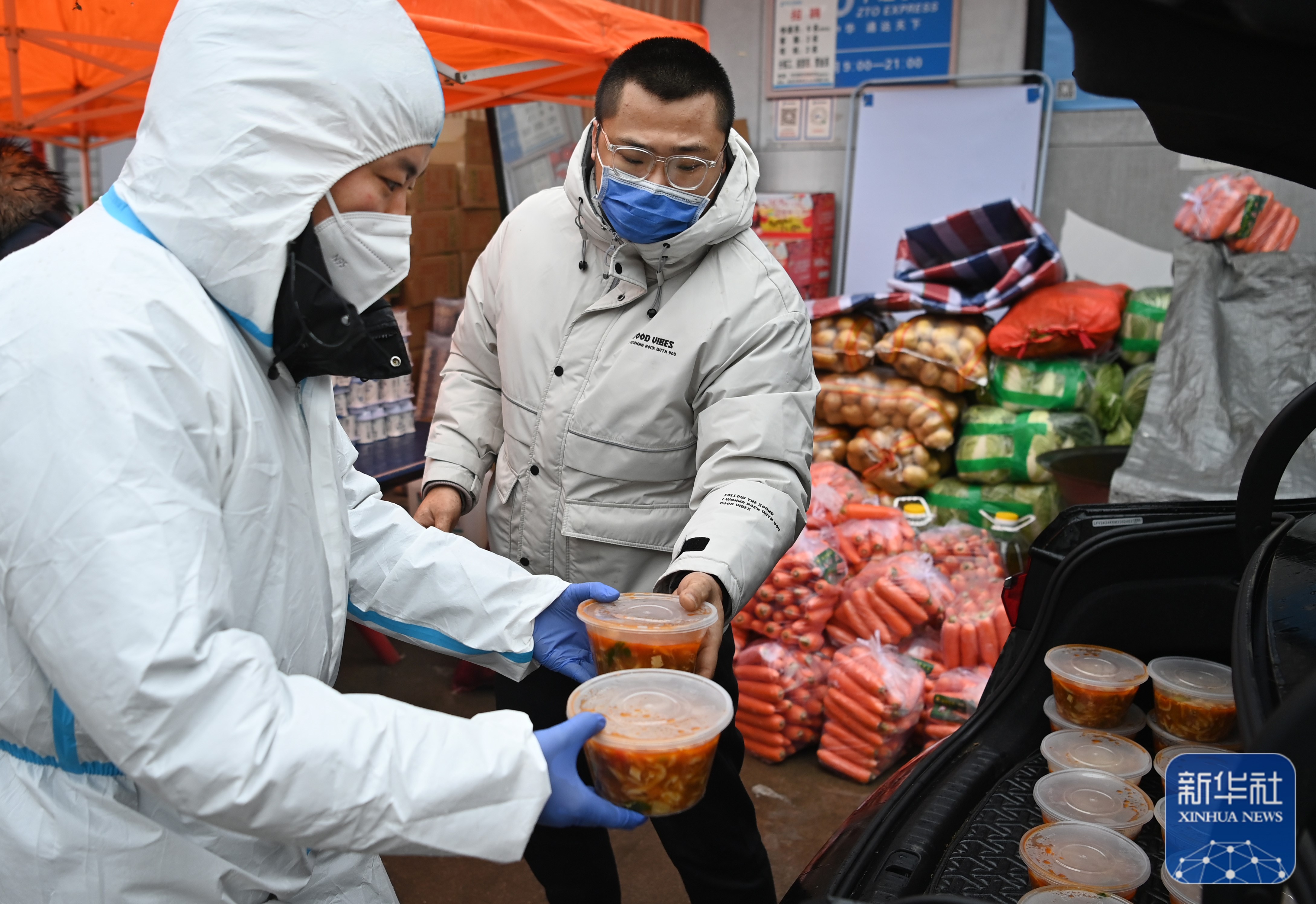1月8日,志愿者在為防疫一線人員運送“愛心餐”。