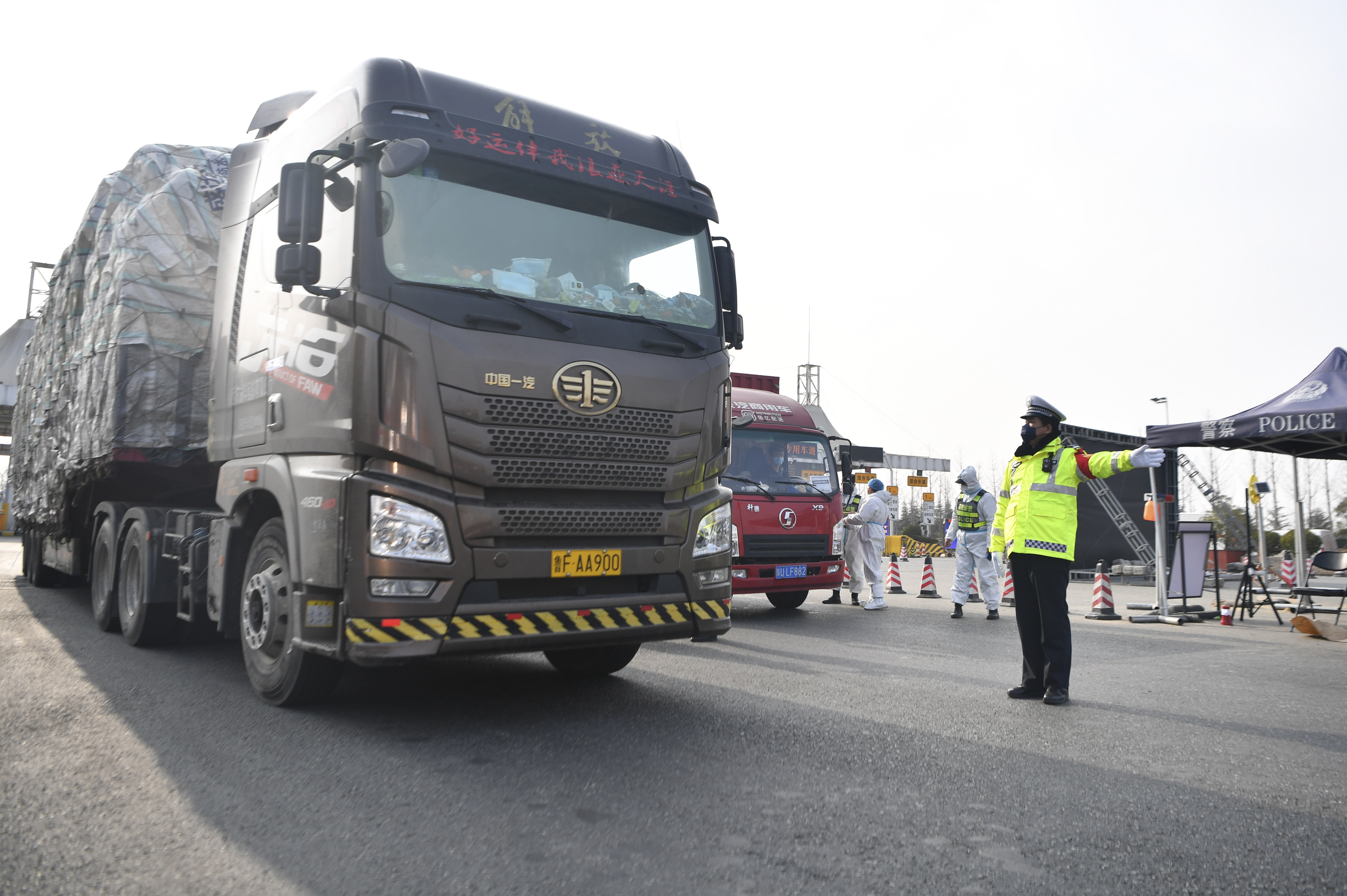 1月10日,西安市公安局交通警察支隊民警在西安市繞城高速河池寨收費站指揮引導車輛通過。新華社記者 張博文 攝