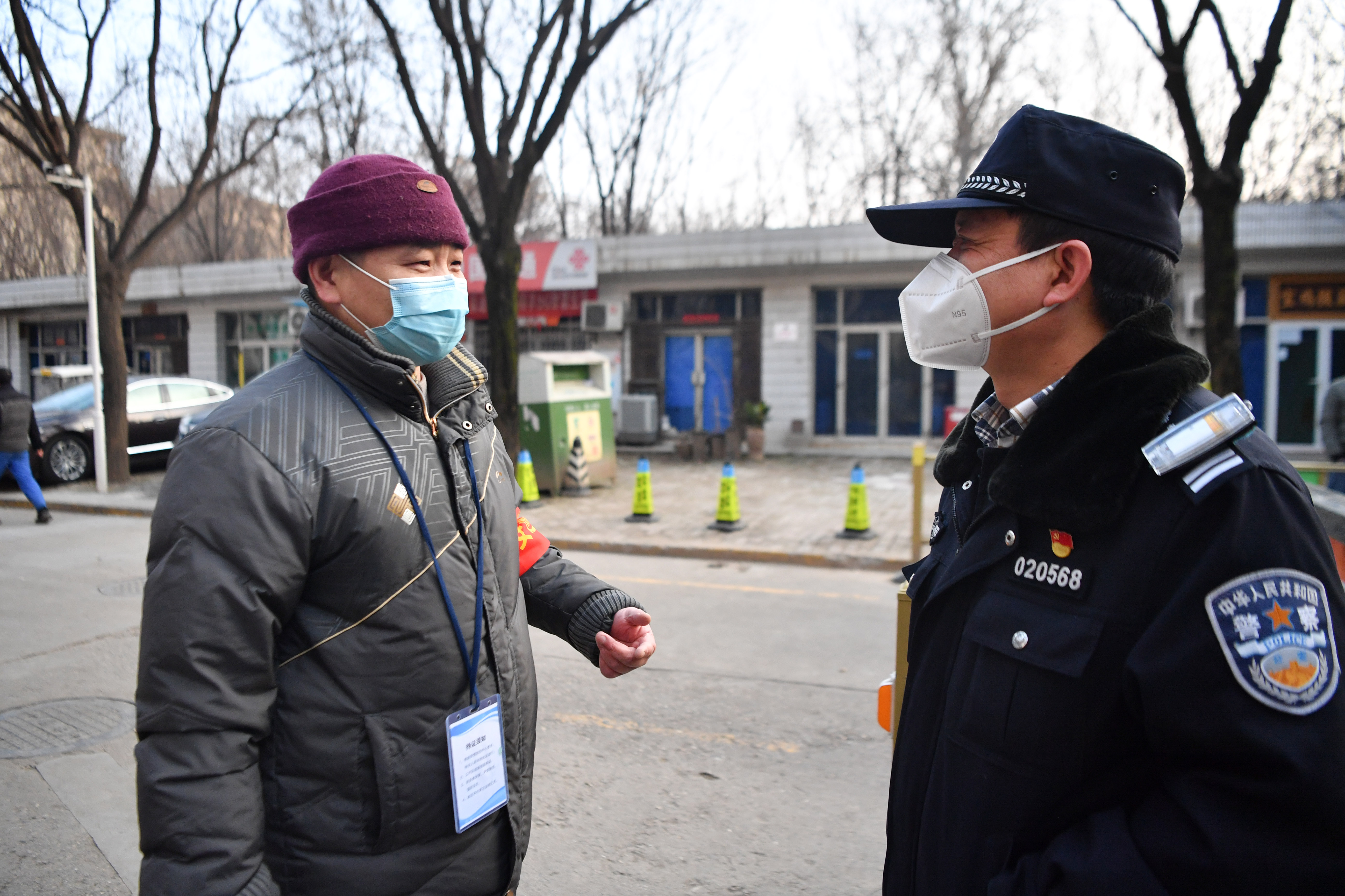 1月10日,西安市公安局新城分局民警在負責執(zhí)勤的社區(qū)與物業(yè)管理人員交流。新華社記者 張博文 攝