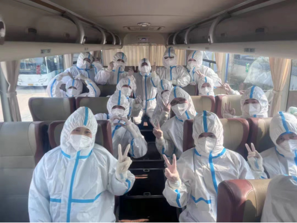 扶風(fēng)縣中醫(yī)醫(yī)院張艷艷,張會(huì)艷,馬字香,鄧文燕,朱曉敏,董曉麗,鄧乃妮,陳永會(huì),程鵬娟,呂佩娟,王萍,孫靜靜,劉娟娟,劉鑫鑫,白珍共15名護(hù)士接到通知后,在短短30分鐘內(nèi)緊急集合完畢。這支緊急抽調(diào)的隊(duì)伍由70后的護(hù)士長(zhǎng)、80后的資深護(hù)士、90后的臨床護(hù)理骨干組成;參加抗疫人員有的家里有面臨高考的孩子、有的還需照顧的年幼的孩子和年邁的老人;接到任務(wù),我們顧不了那么多,大家放下兒女情長(zhǎng)、放下孝順慈愛,迎著寒風(fēng),穿上“白衣鎧甲”,短暫與家人告別后,奮不顧身的奔赴西安疫情防控的第一線。