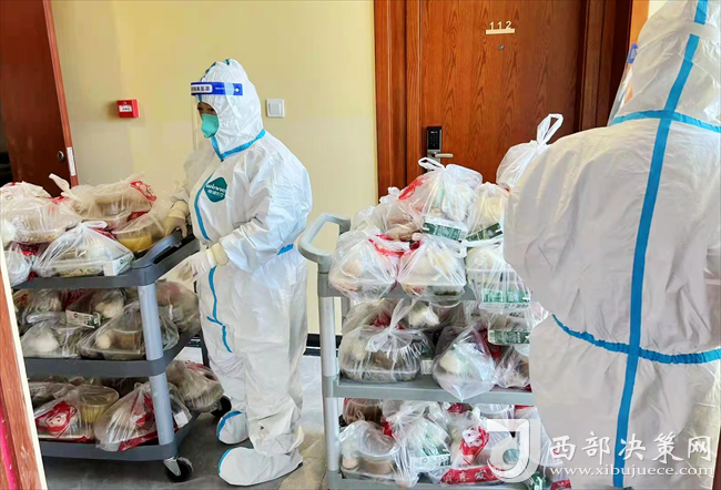 隔離區(qū)里,“大白”們每天準時在取餐點將盒飯裝入餐車,迅速穿梭在各個樓層之間,只為隔離學生能盡快吃到熱乎的飯菜;送完餐顧不上休息,又開始對319間客房門口的生活垃圾進行消毒、打包,再一趟趟送往廢棄物集中收儲點;為防止疫情外溢,她們利用晚上休息時間,抓緊學習個人防護知識,接受醫(yī)護人員專業(yè)培訓,將穿脫防護服、口罩、手套、護目鏡、腳套、消毒等每一個環(huán)節(jié)要求,牢牢刻在心里面、化在行動上。