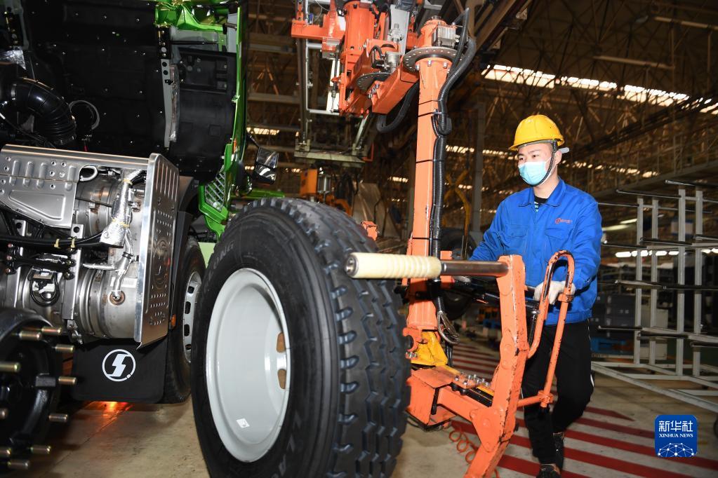 1月20日,工人在陜西汽車控股集團有限公司總裝車間進行重型卡車裝配。新華社記者 李一博 攝