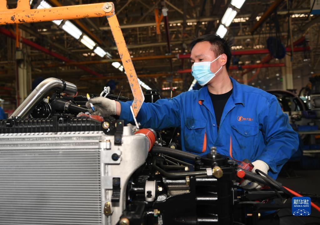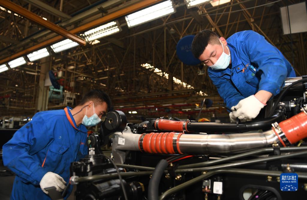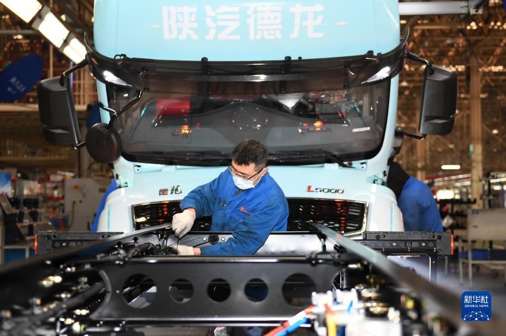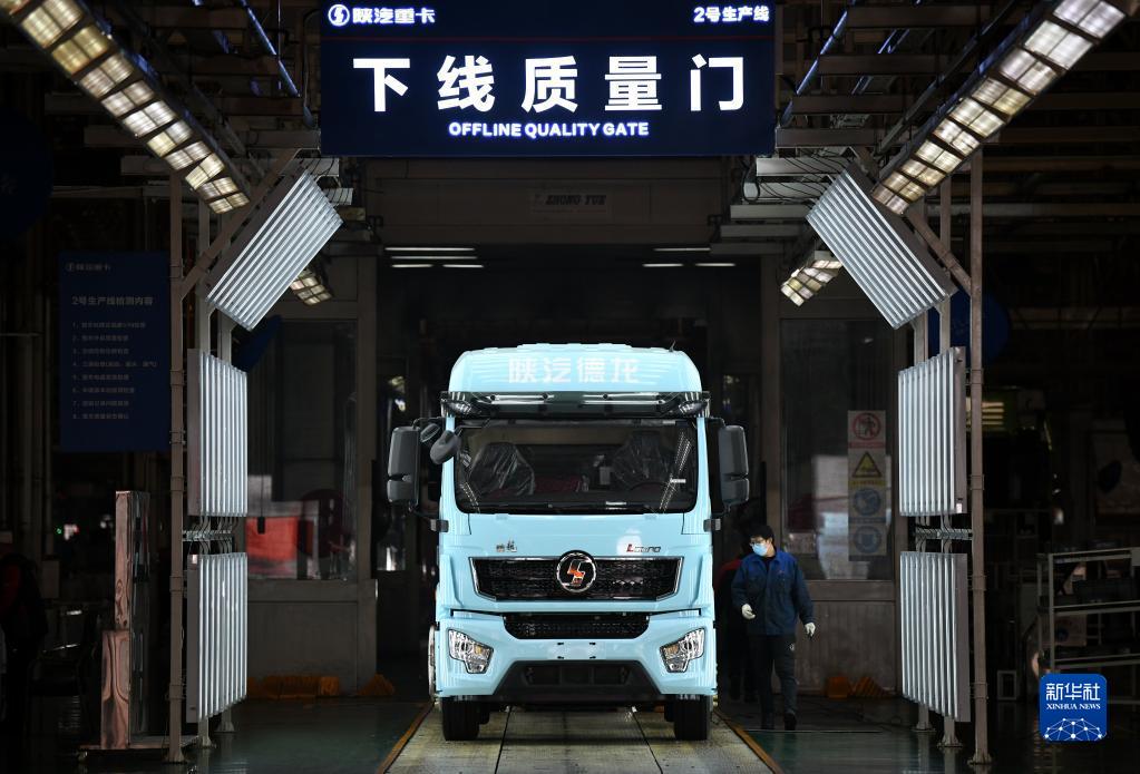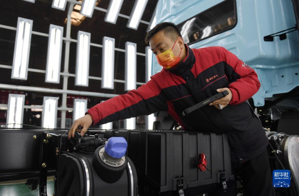 1月20日,工作人員在陜西汽車控股集團有限公司總裝車間進行重型卡車驗收。新華社記者 李一博 攝