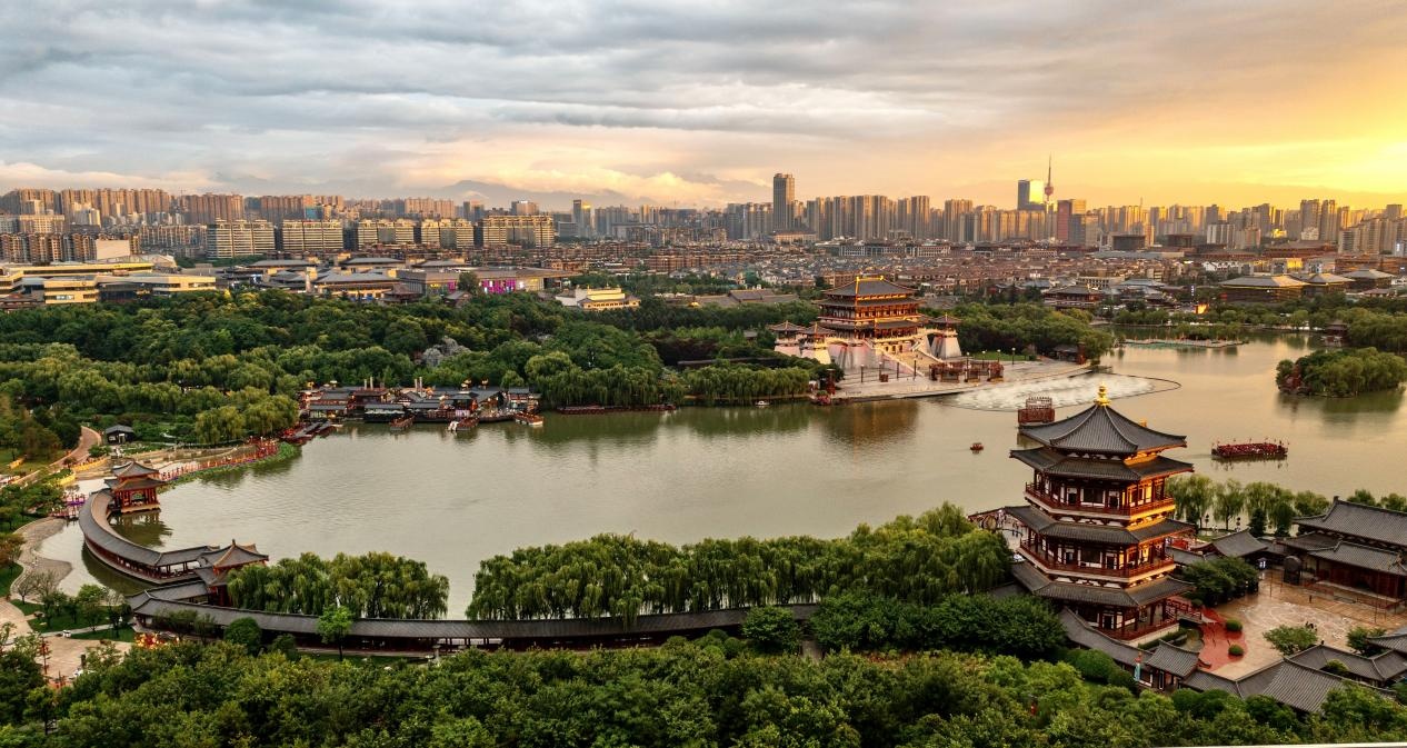日暮下的西安曲江新區(qū)景色(央廣網(wǎng)發(fā) 西安曲江新區(qū)宣傳網(wǎng)信局供圖)