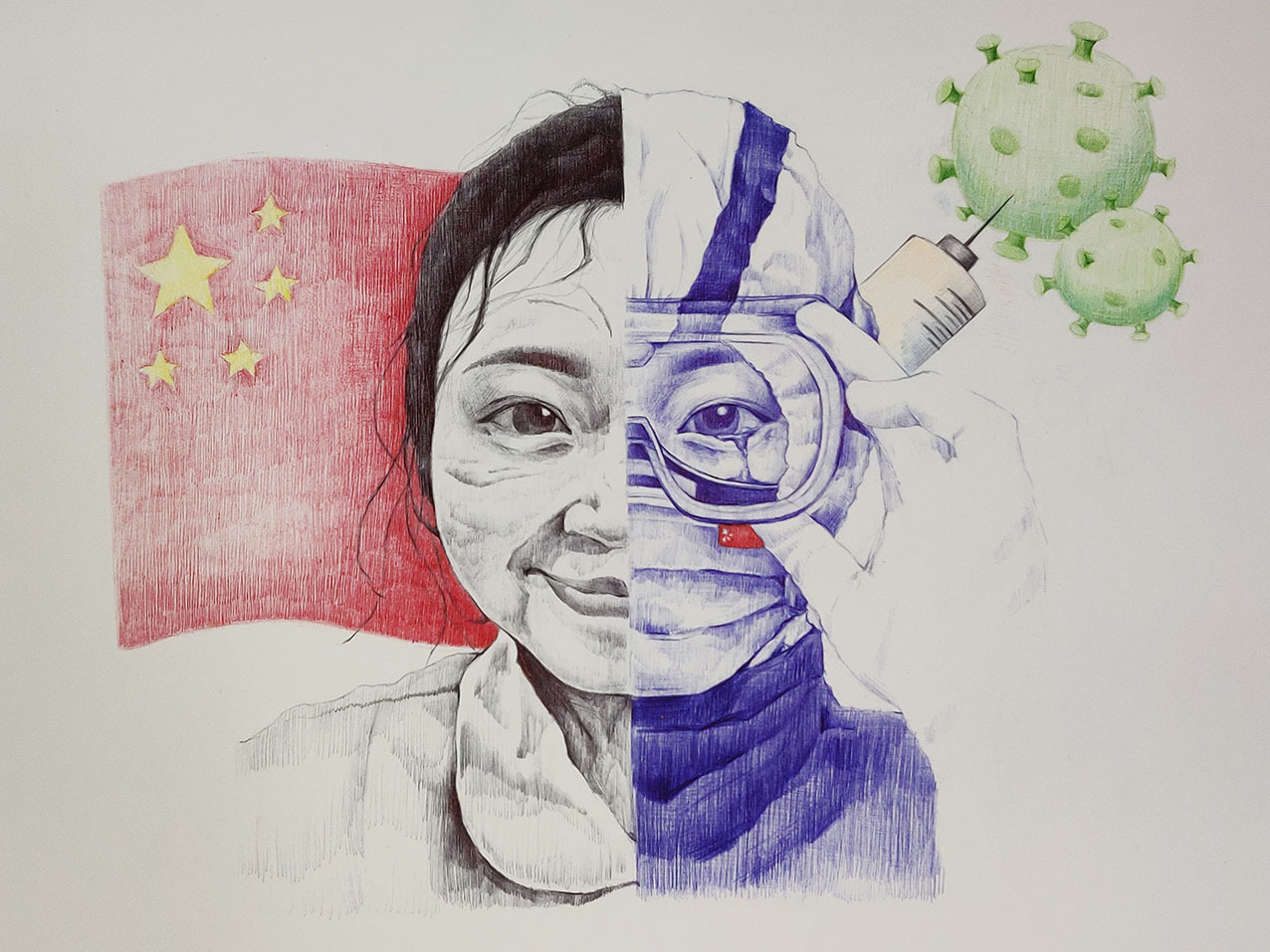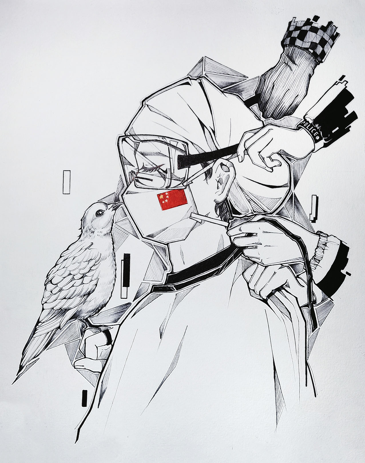 2021年12月,新冠肺炎疫情在西安突然暴發(fā),面對(duì)突如其來(lái)的疫情和嚴(yán)峻復(fù)雜的防控形勢(shì),在加強(qiáng)落實(shí)疫情防控、保障師生健康的同時(shí),西安工程大學(xué)服裝與藝術(shù)設(shè)計(jì)學(xué)院積極應(yīng)對(duì),組織全院師生有序、規(guī)范開(kāi)啟2021年秋季期末課程結(jié)課的線上教學(xué)。任課教師及時(shí)調(diào)整結(jié)課作業(yè)主題,充分利用視覺(jué)傳達(dá)設(shè)計(jì)專業(yè)特點(diǎn),組織同學(xué)們嚴(yán)謹(jǐn)認(rèn)真、激情飽滿地用畫筆以藝抗疫,致敬最美逆行者!