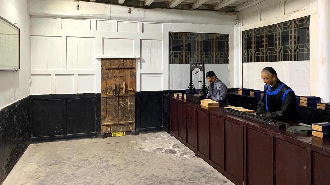 △日昇昌記內(nèi),還原了票號(hào)當(dāng)年對(duì)外營業(yè)的柜房環(huán)境。(總臺(tái)央視記者 段德文拍攝)