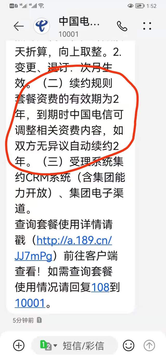 我當(dāng)時(shí)辦理業(yè)務(wù)的時(shí)候,電信業(yè)務(wù)員給我說(shuō)的是套餐兩年不變,也沒(méi)說(shuō)不能轉(zhuǎn)網(wǎng)。而且我的套餐詳情里續(xù)約規(guī)則顯示套餐資費(fèi)的有效期為2年,到期時(shí)中國(guó)電信可調(diào)整相關(guān)資費(fèi)內(nèi)容,如雙方無(wú)異議自動(dòng)續(xù)約2年。
