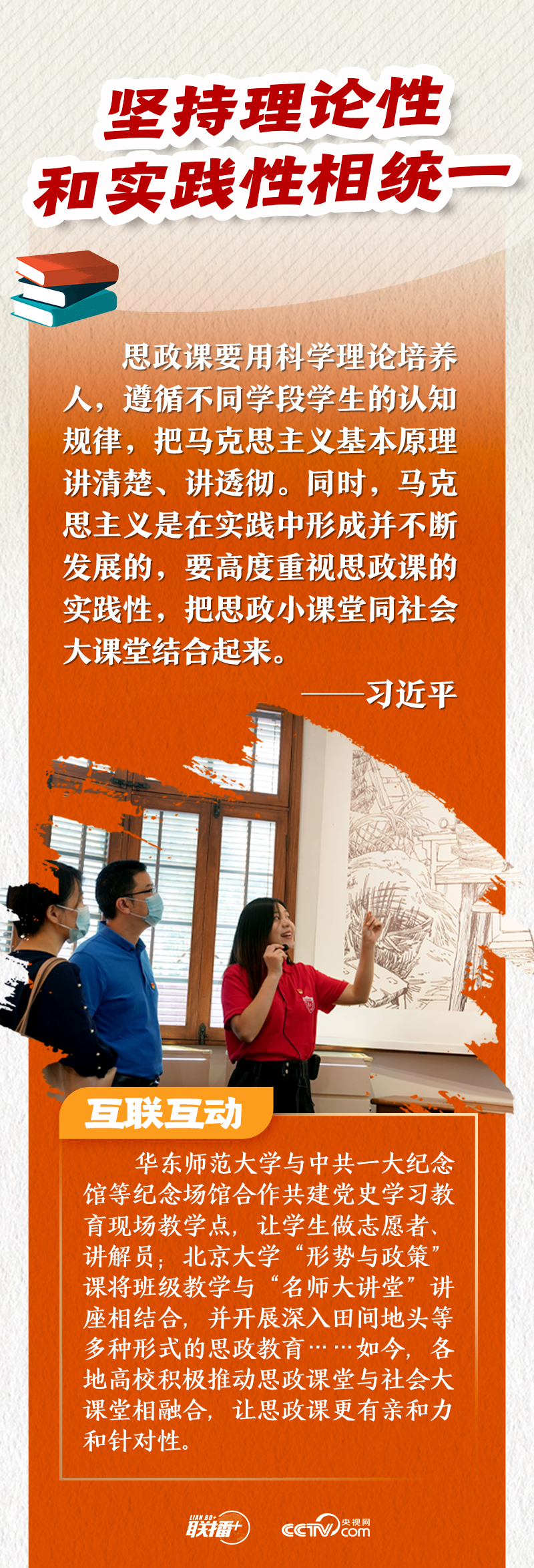 如今,思政課不再是枯燥的理論說教,而是結(jié)合了歷史故事、新時(shí)代精神、地域特色等元素的“思政大餐”。央視網(wǎng)《聯(lián)播+》特推出海報(bào),與您一同了解思政課的變化。