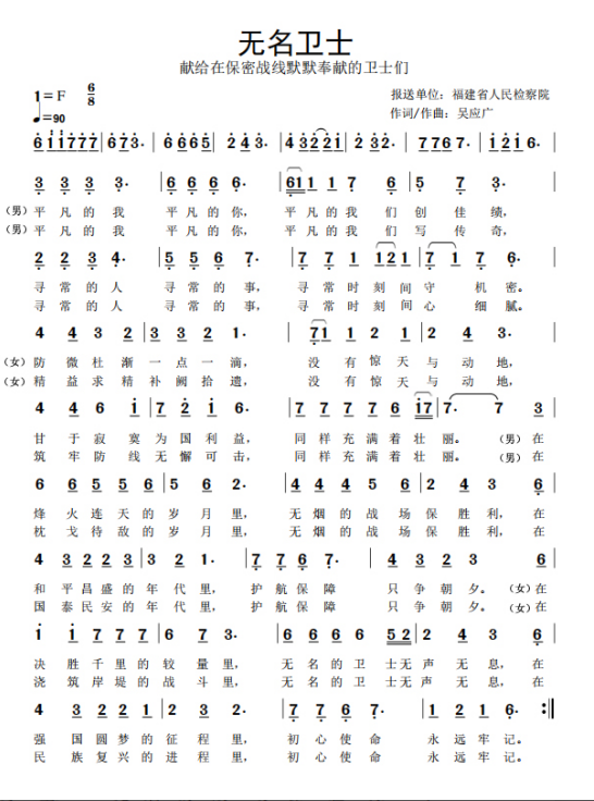 慶祝建黨百年獲獎歌曲作品選集——《無名衛(wèi)士》歌詞。