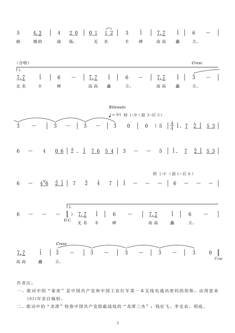 一、A1段歌詞中的“豪密”是中國(guó)共產(chǎn)黨和中國(guó)工農(nóng)紅軍第一本無(wú)線電通訊密碼的簡(jiǎn)稱(chēng),由周恩來(lái)1931年親自編制。