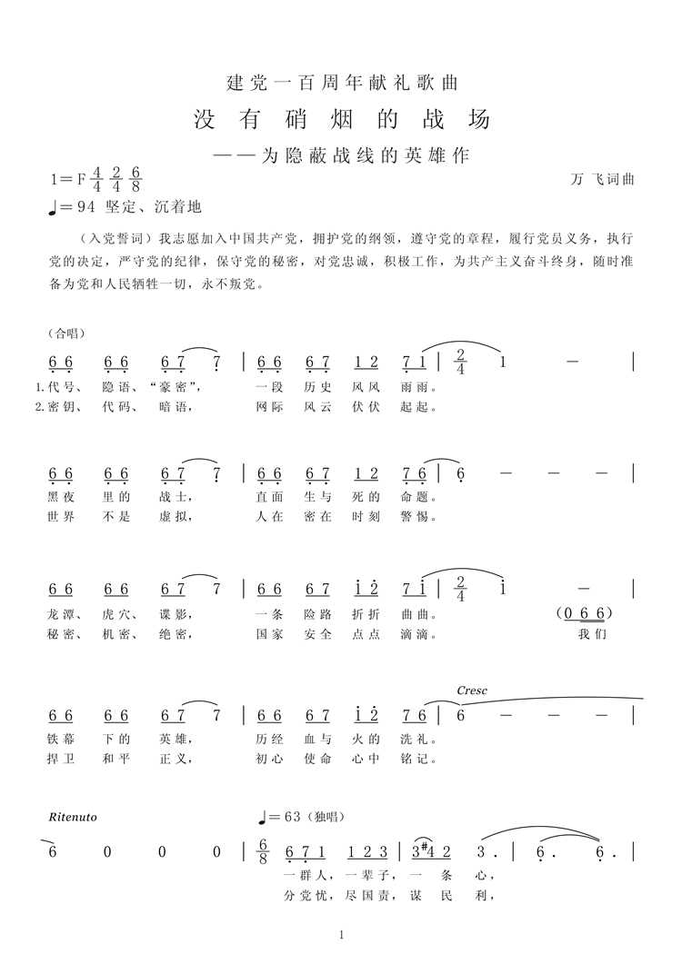 慶祝建黨百年獲獎(jiǎng)歌曲作品選集——《沒(méi)有硝煙的戰(zhàn)場(chǎng)》歌詞。