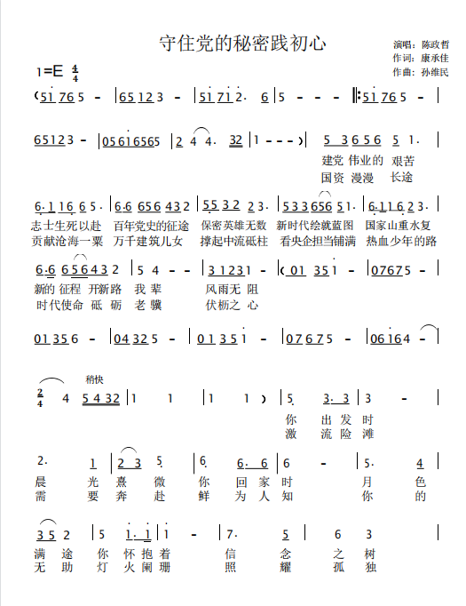 慶祝建黨百年獲獎歌曲作品選集——《守住黨的秘密踐初心》詞曲。