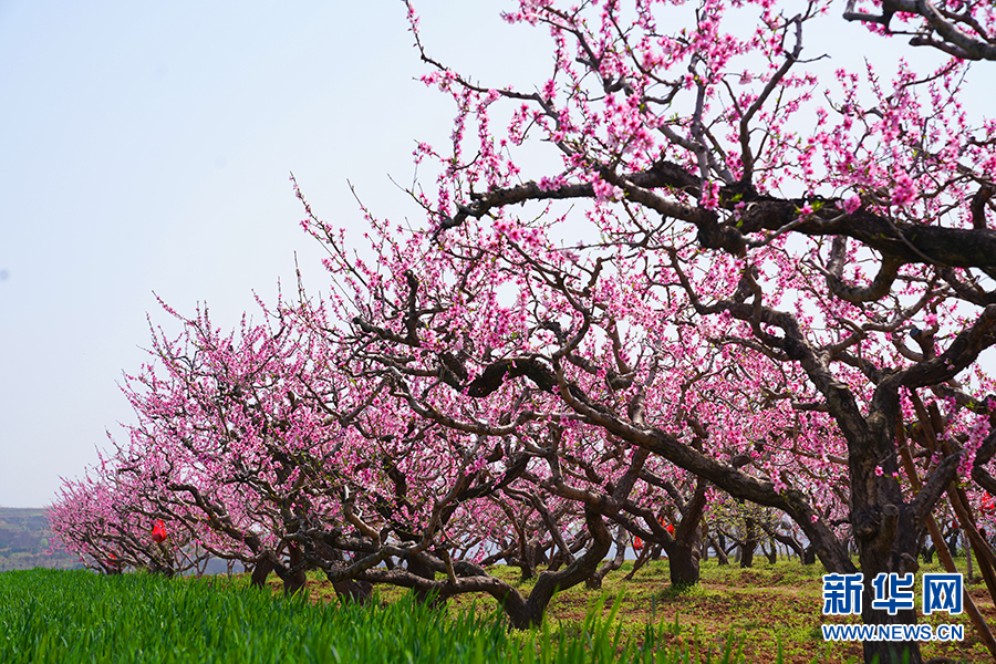 陽(yáng)春三月的臨潼零塬村桃花林。新華網(wǎng)發(fā) 王三合 攝