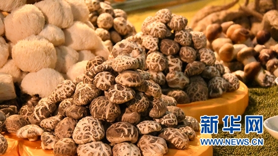 圖為隨州香菇在2021年湖北農(nóng)業(yè)博覽會(huì)上展出。新華網(wǎng)發(fā) 夏國(guó)燕攝