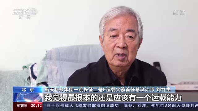 航天科技集團一院長征二號F運載火箭首任總設計師 劉竹生:我覺得最根本的還是應該有一個運載能力,你要是運載能力不夠,連個飛船都運不上去,還載什么人?所以這個是最基本的。再加上第一個是高可靠,第二個是高安全。