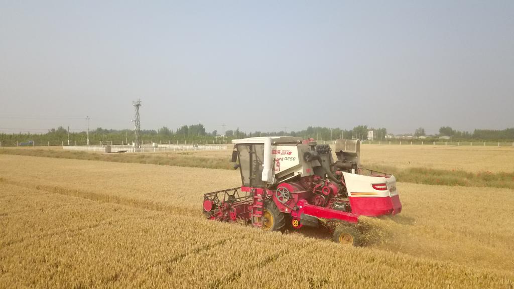 圖為中國(guó)科學(xué)院南皮生態(tài)農(nóng)業(yè)試驗(yàn)站的“小偃60”耐鹽堿小麥“開鐮”收割。(受訪者供圖)