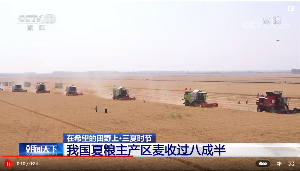 央視網(wǎng)消息:農(nóng)業(yè)農(nóng)村部在昨天(6月15日)發(fā)布的小麥機收進(jìn)度顯示,全國已收獲小麥面積2.62億畝,收獲進(jìn)度86%。