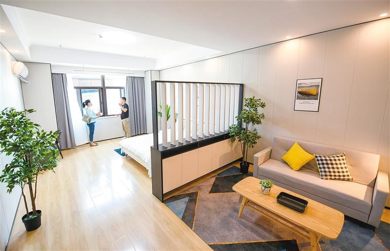 簡單介紹后,工作人員帶著劉女士參觀了位于6樓的樣板間。“真寬敞夠亮堂!”房門打開的一瞬間,劉女士忍不住感嘆道。這套房源有70多平方米,裝修簡約時(shí)尚、充滿年輕氣息,洗衣機(jī)、冰箱、空調(diào)等設(shè)施一應(yīng)俱全,家具陳列干凈整潔。“真沒想到條件這么好,房間內(nèi)的裝修和家具都是我喜歡的樣子。尤其是房間里有獨(dú)立的衛(wèi)浴,住起來會(huì)很方便。”劉女士說,自己對(duì)房源很滿意。參觀結(jié)束后,劉女士立即向工作人員詳細(xì)詢問租住流程。