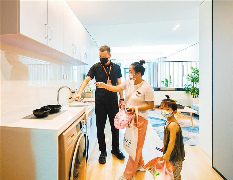 來自甘肅的潘先生,家里有個(gè)24歲的女兒,剛剛工作才兩年,一直都是租房住,安全問題是他最擔(dān)心的。聽說這里的保障性租賃住房是政府項(xiàng)目,跟市面上的租賃住房相比,這里的房租更低,質(zhì)量上也更有保障,潘先生很感興趣,在看過樣板間后,讓女兒盡快拎包入住的想法更加強(qiáng)烈。“這里房間干凈整潔、安全性好,全天都有保安值守,孩子住這我心里很踏實(shí)。”潘先生說。