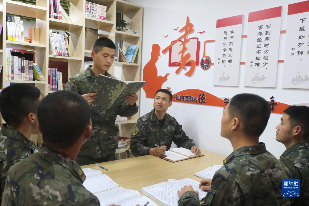 中共中央總書記、國家主席、中央軍委主席習(xí)近平24日下午出席軍隊(duì)領(lǐng)導(dǎo)干部會(huì)議時(shí)發(fā)表的重要講話,在解放軍和武警部隊(duì)引起強(qiáng)烈反響。這是南部戰(zhàn)區(qū)陸軍第74集團(tuán)軍某合成旅“大渡河連”組織官兵認(rèn)真學(xué)習(xí)習(xí)主席重要講話(10月25日攝)。新華社發(fā)(薛健 攝)