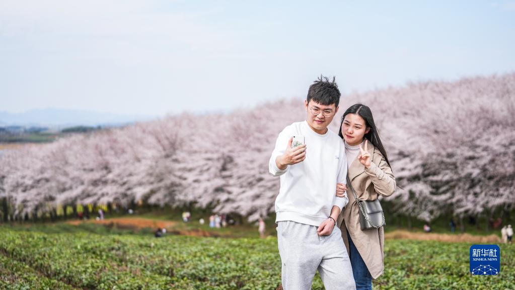 3月21日,游客在貴州省貴安新區(qū)櫻花園游玩。新華社記者 陶亮 攝