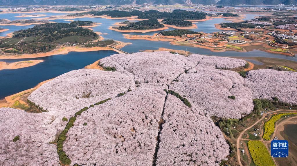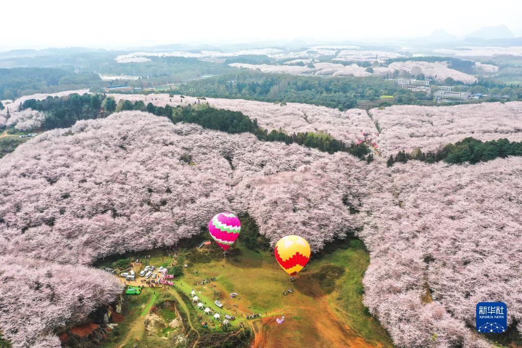 近日,貴州省貴安新區(qū)櫻花園內(nèi)的2.4萬畝櫻花競(jìng)相綻放,如雪似霞,吸引游客前來賞花觀光?!?/p>