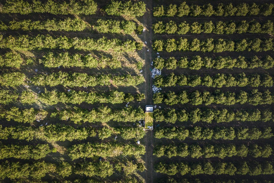 這是2023年5月24日在南非西北省拍攝的一處柑橘農(nóng)場(無人機照片)。(新華社發(fā),希拉茲·穆罕默德攝)