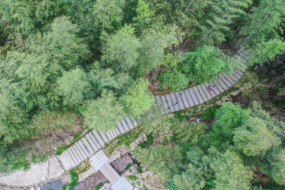近年來,藍(lán)山縣打出一套“組合拳”,優(yōu)化營商環(huán)境,加強(qiáng)基礎(chǔ)設(shè)施建設(shè),支持民營企業(yè)發(fā)展,讓企業(yè)放心投資文旅產(chǎn)業(yè)。在藍(lán)山谷景區(qū),當(dāng)?shù)卮迕裾涌煊尾降?、石拱橋等建設(shè),為即將到來的賞楓旺季做準(zhǔn)備。