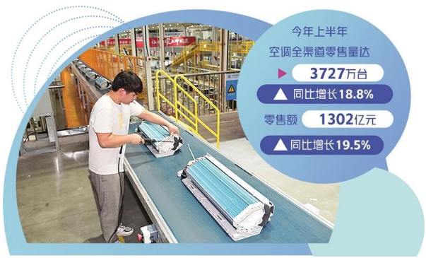今年上半年,空調(diào)產(chǎn)品銷售量、銷售額增長均在19%左右,為整個家電行業(yè)增長最好的品類。