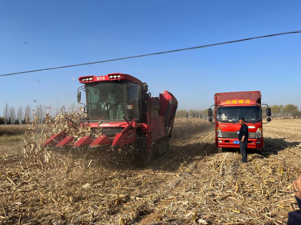 壽陽縣景尚鄉(xiāng)正在進行玉米機收。新華社記者 王勁玉 攝