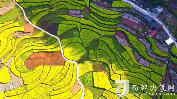 西部決策網(wǎng)訊 三月中旬,花紅柳綠,春雨綿綿。一腳踏進(jìn)鎮(zhèn)巴簡(jiǎn)池鎮(zhèn)李塘村,心都醉了。千畝田園油菜花進(jìn)盛花期,站在高處遠(yuǎn)望,金黃燦爛、層層疊疊的油菜花田依山傍水,清香撲鼻,美不勝收,與連綿的青山、清澈的河水、蜿蜒的公路、穿梭來(lái)往的游客、漂亮的民居、春耕的村民等交相輝映,構(gòu)成一幅美麗的鄉(xiāng)村振興“調(diào)色板”和春日鄉(xiāng)村畫卷。