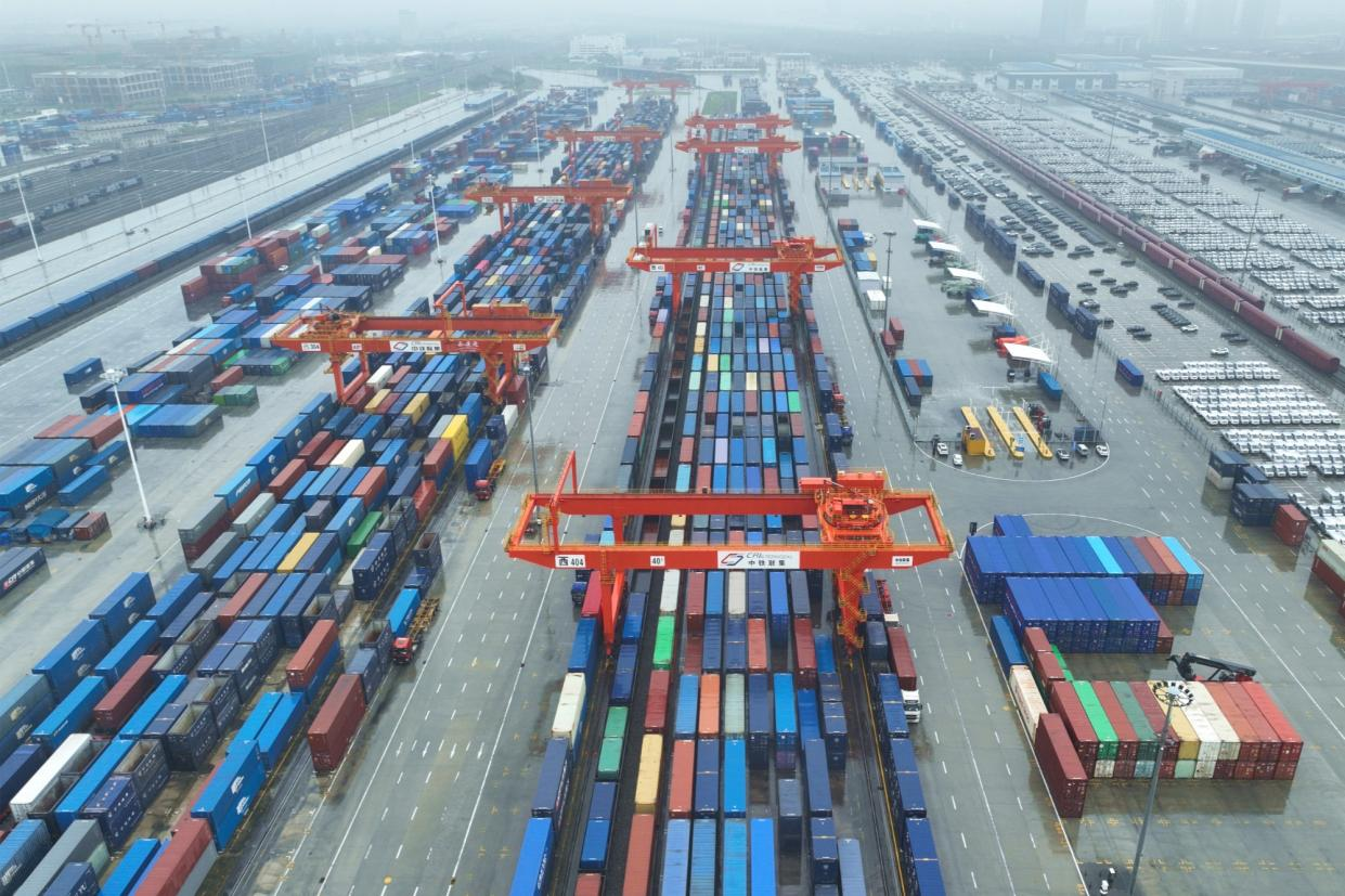 一排排集裝箱疊放整齊,大型龍門吊巨臂揮舞,集裝箱卡車往來穿梭……走進西安國際港站,貨物運輸繁忙而有序。近日,隨著最后一個集裝箱吊裝至中歐班列上,中哈雙方合作共建的中歐班列哈薩克斯坦西安碼頭正式投入運營。滿載日用百貨、機械設(shè)備和新能源汽車等商品的中歐班列,一路向西,經(jīng)哈薩克斯坦、跨越里海,最終抵達阿塞拜疆巴庫。