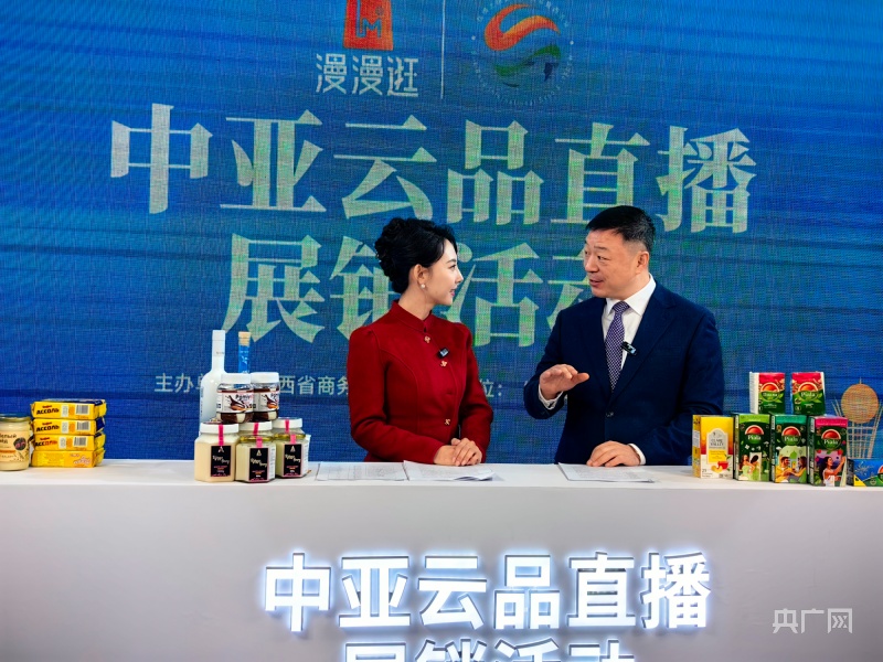 第七屆絲博會上,一場中亞云品展銷活動直播正在進行(央廣網(wǎng)記者 陳鏘 攝)