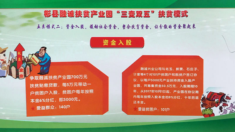 彬州融誠集團(tuán)公司按照“企業(yè)主導(dǎo)、政府搭臺(tái)、群眾參與、社會(huì)共建”的思路,圍繞主導(dǎo)產(chǎn)業(yè),緊盯市場(chǎng)需求和脫貧政策動(dòng)向, 在外出考察學(xué)習(xí)的基礎(chǔ)上,借鑒貴州省六盤水市“三變”改革的成功經(jīng)驗(yàn),以“資源變資產(chǎn)、資金變股金、農(nóng)民變股東”三變改革為基礎(chǔ), 探索總結(jié)出了符合融誠實(shí)際的“三變雙五”新模式。